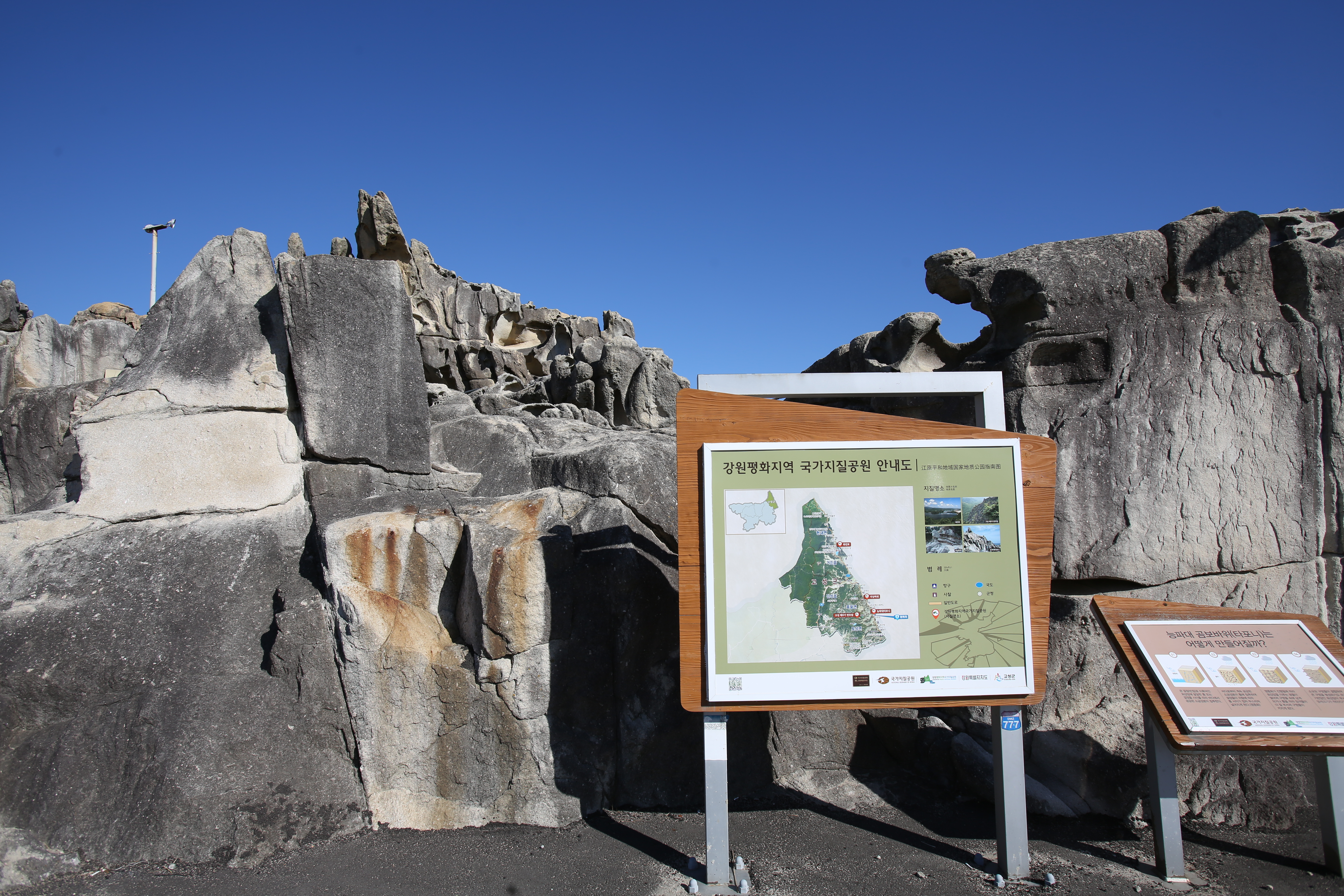 백도해수욕장 근처의 능파대 지질공원은 타포니 바위군이 형성돼 있다. 화강암 틈으로 바다에서 날아온 소금성분이 침투해 틈 사이가 점차 부서져 넓어지며 독특한 형태를 띠는 것인데 BTS가 이곳에서 화보를 촬영하기도 했다.
