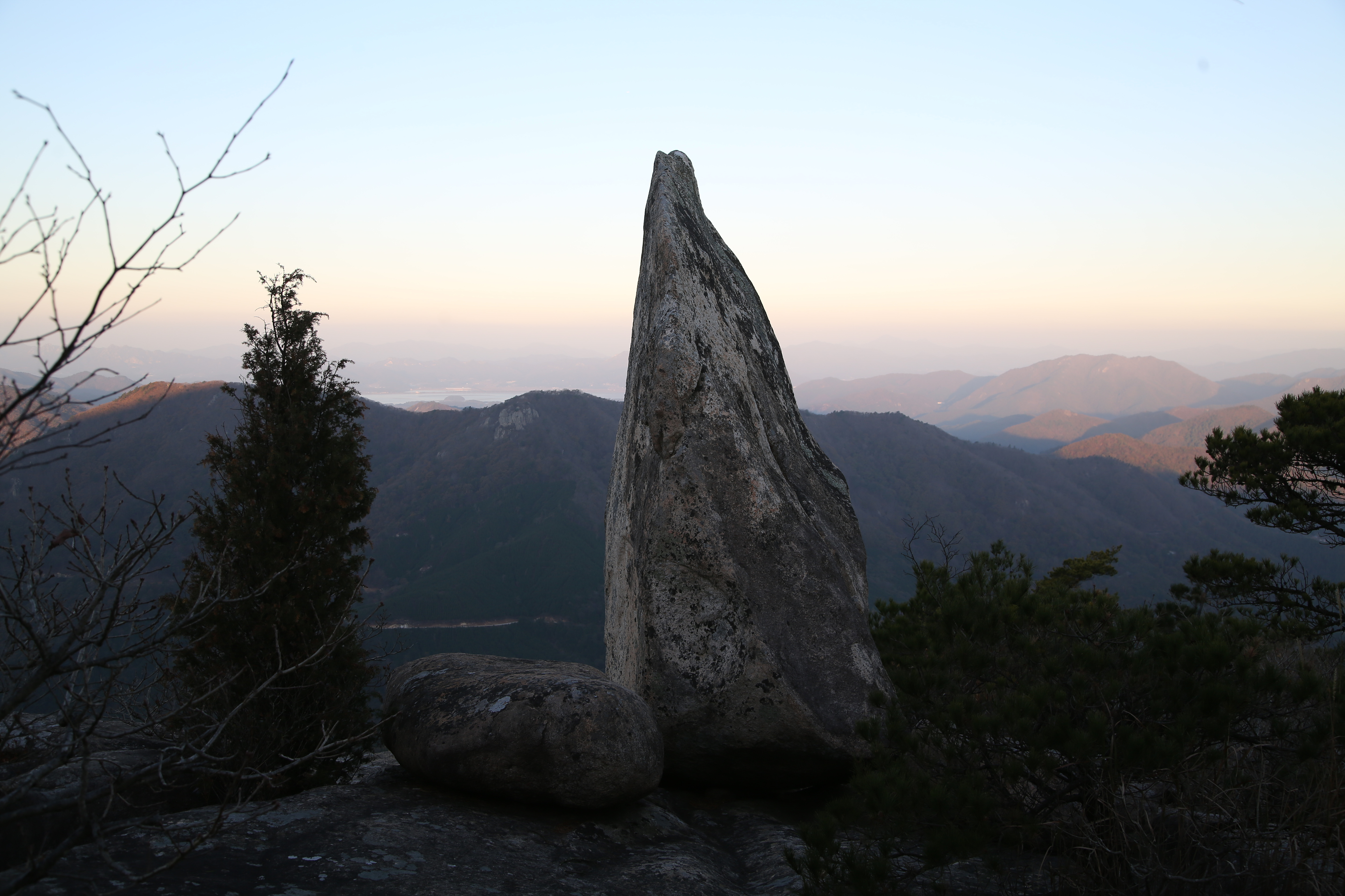 산 들머리를 조금 지나니 서서히 새벽 여명이 시작되었다. 멀리 하늘의 관(冠)을 쓴 듯한 바위가 보이기 시작했다. 그래서 천관산(天冠山)이다. 신라시대 김유신과 사랑을 나눈 천관녀가 숨어 살았다는 전설이 전한다.