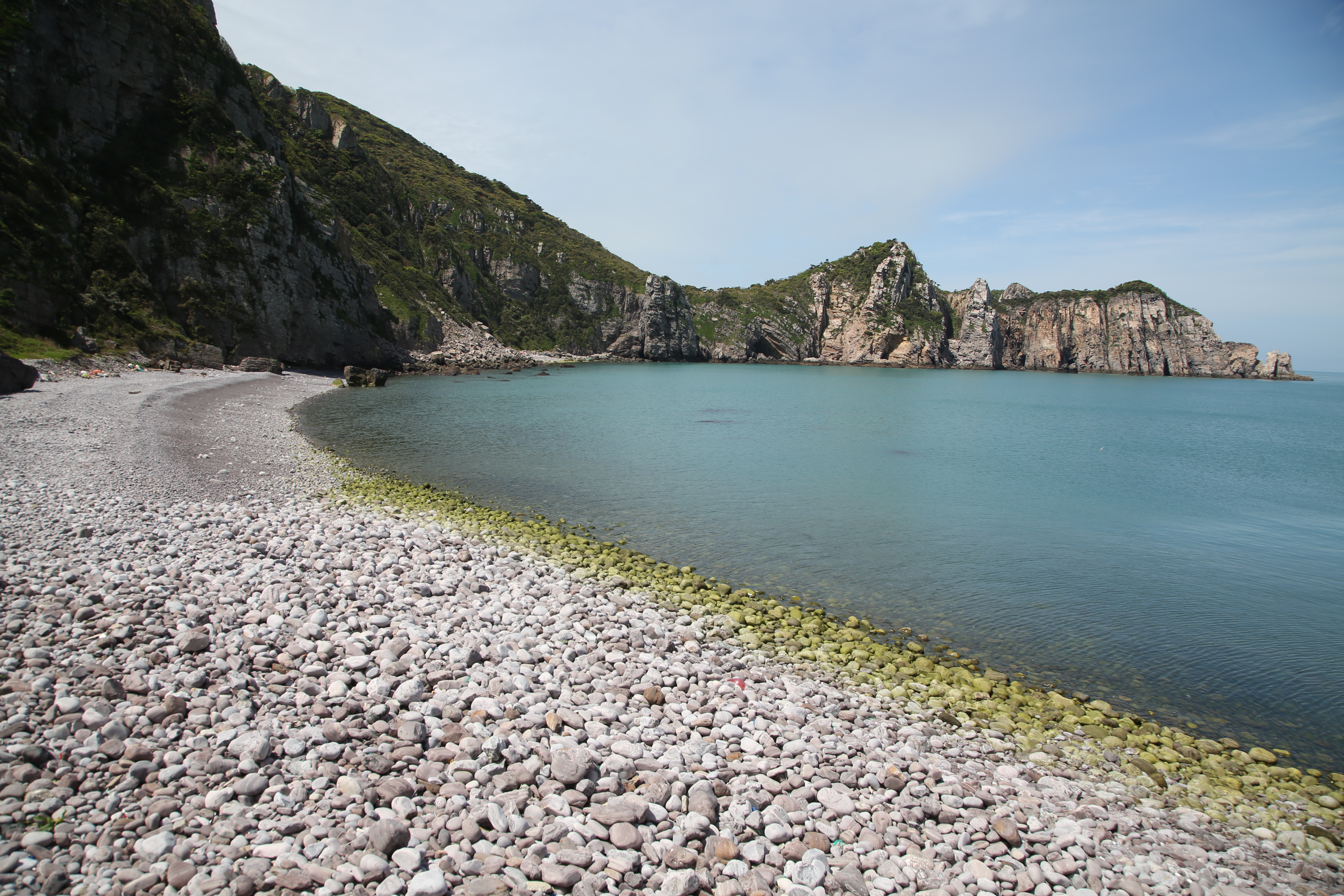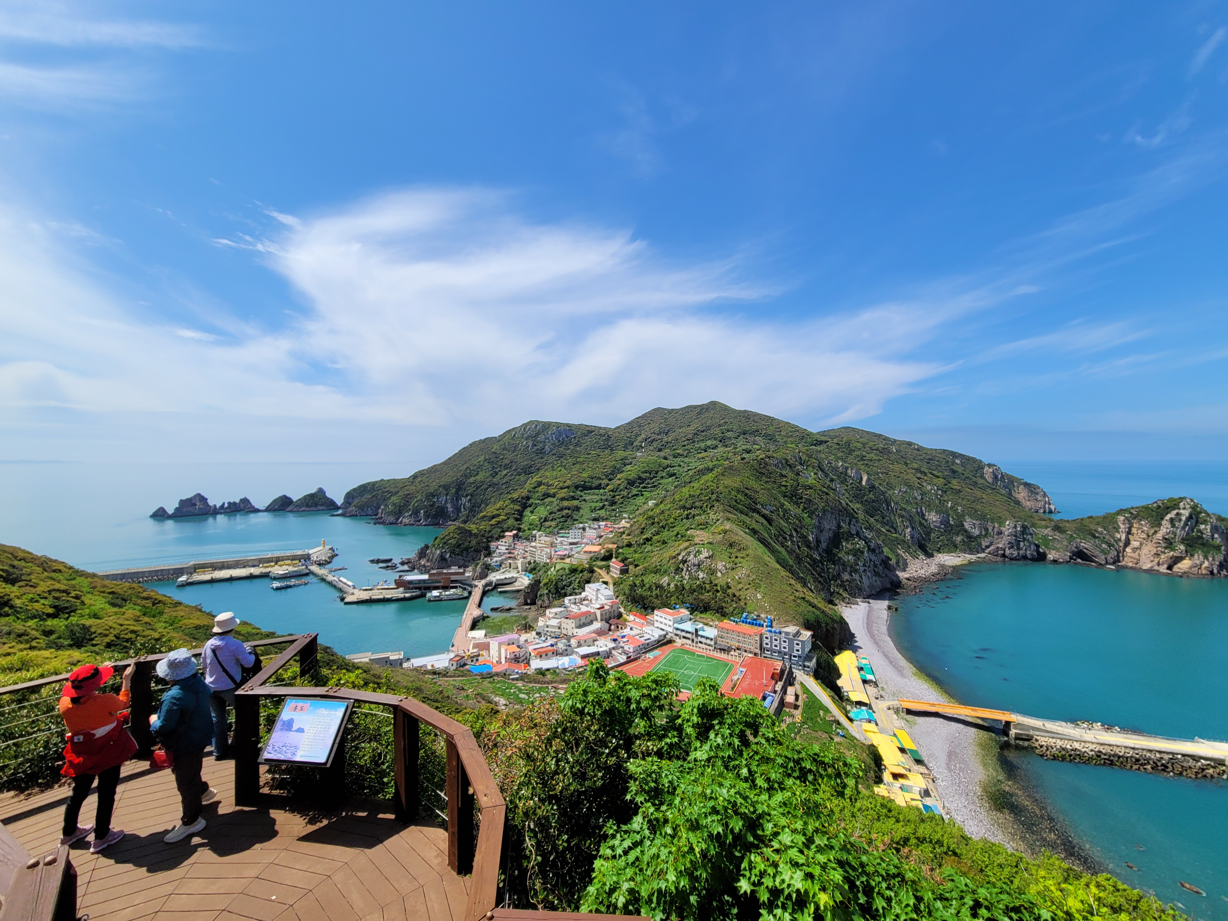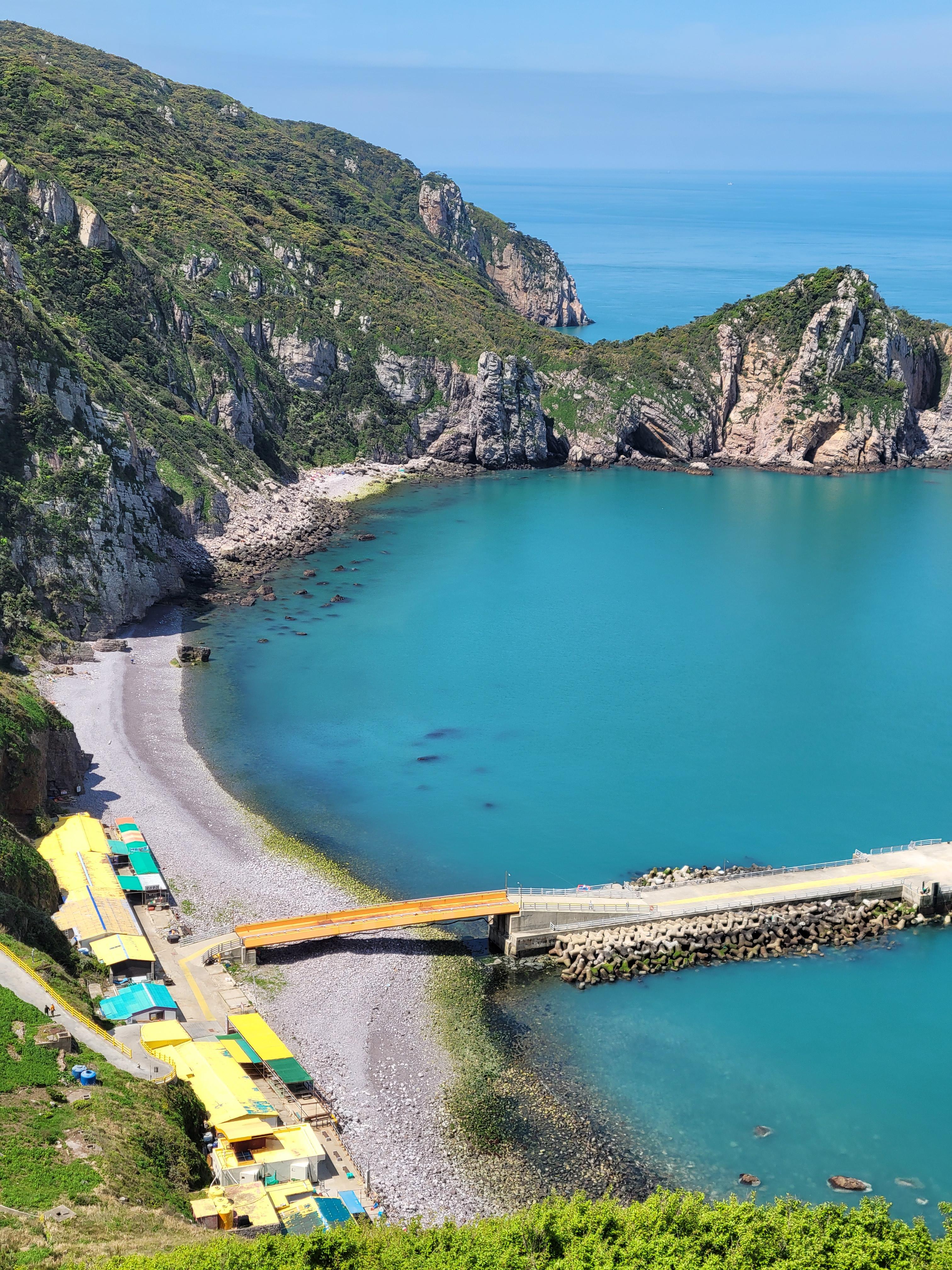 전망대에서 바라보는 모습은 절경이란 말이 아깝지 않다. 1구 마을과 선착장, 푸른 바다와 그 위로 솟아오른 기암괴석이 한눈에 들어온다. 계단을 좀 더 올라 동백나무 터널을 지나면 두 번째 전망대가 나온다. 오른편 몽돌해변이 더 잘 보인다. 여기서 3, 40분 더 올라가면 고치산 깃대봉이 나온다.