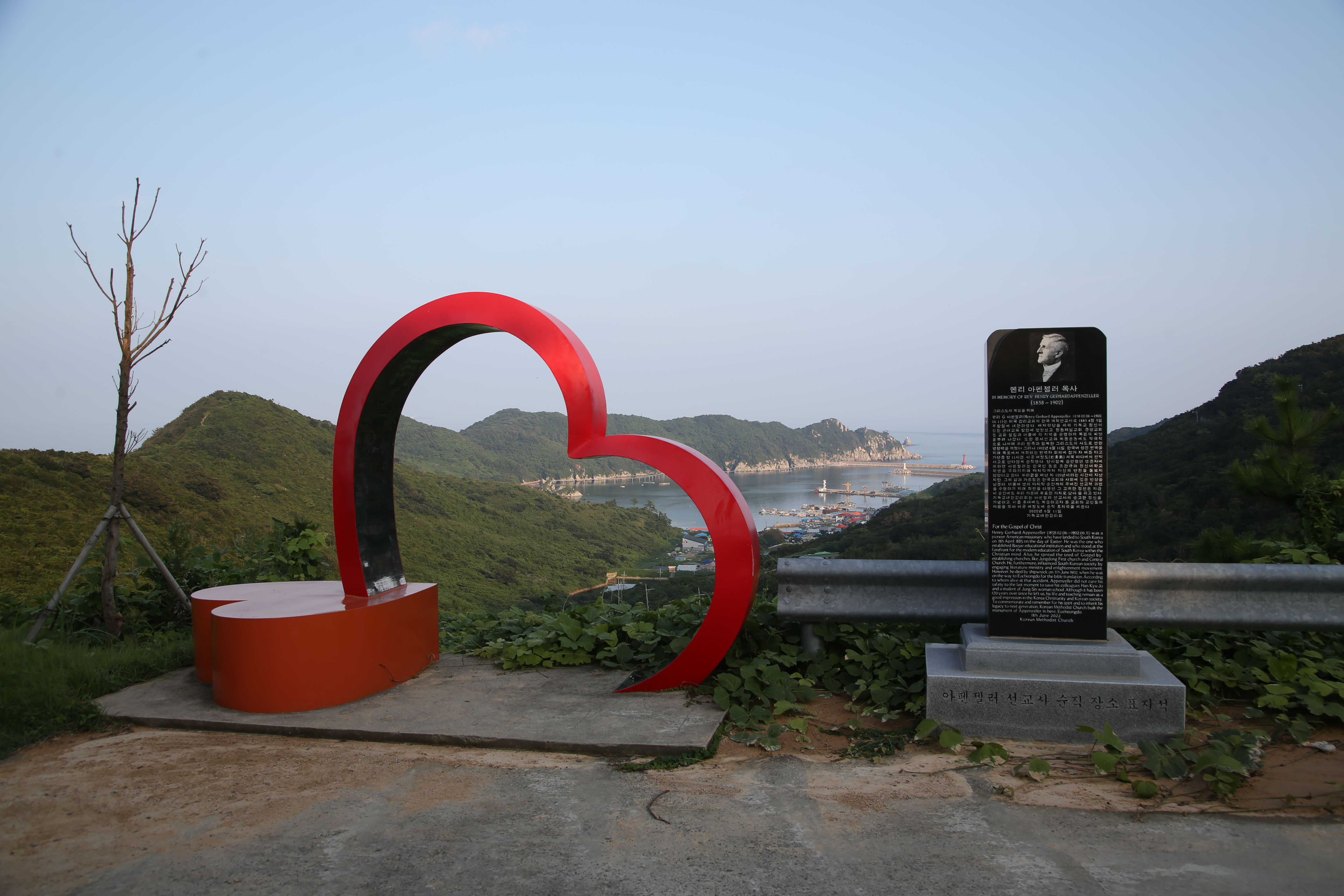 선착장 앞 가파른 나무계단을 오르자 바로 울창한 숲이 펼쳐졌다. 조릿대숲과 헬기장을 지나자 봉수대가 나왔다. 봉수대는 고려시대 의종 3년(1148)에 설치한 것으로 추정하는데 왜구를 비롯해 외적의 침입에 대비하기 위한 것이다. 봉수대에서 당산쉼터를 지나자 바다와 어청도 마을이 한눈에 내려다 보이는 전망 좋은 팔각정쉼터가 나왔다. 팔각정 옆에는 초기 기독교 선교 역사의 중요 인물인 아펜젤러 선교사의 순직 120주년을 기념한 아펜젤러 순직 표지석이 세워져 있다. 1902년 6월 11일 목포에서 열리는 성서번역자 회의에 참석하러 가던 중 이곳 어청도 바다에서 그가 탄 배와 일본 상선이 충돌하여 사망했다.