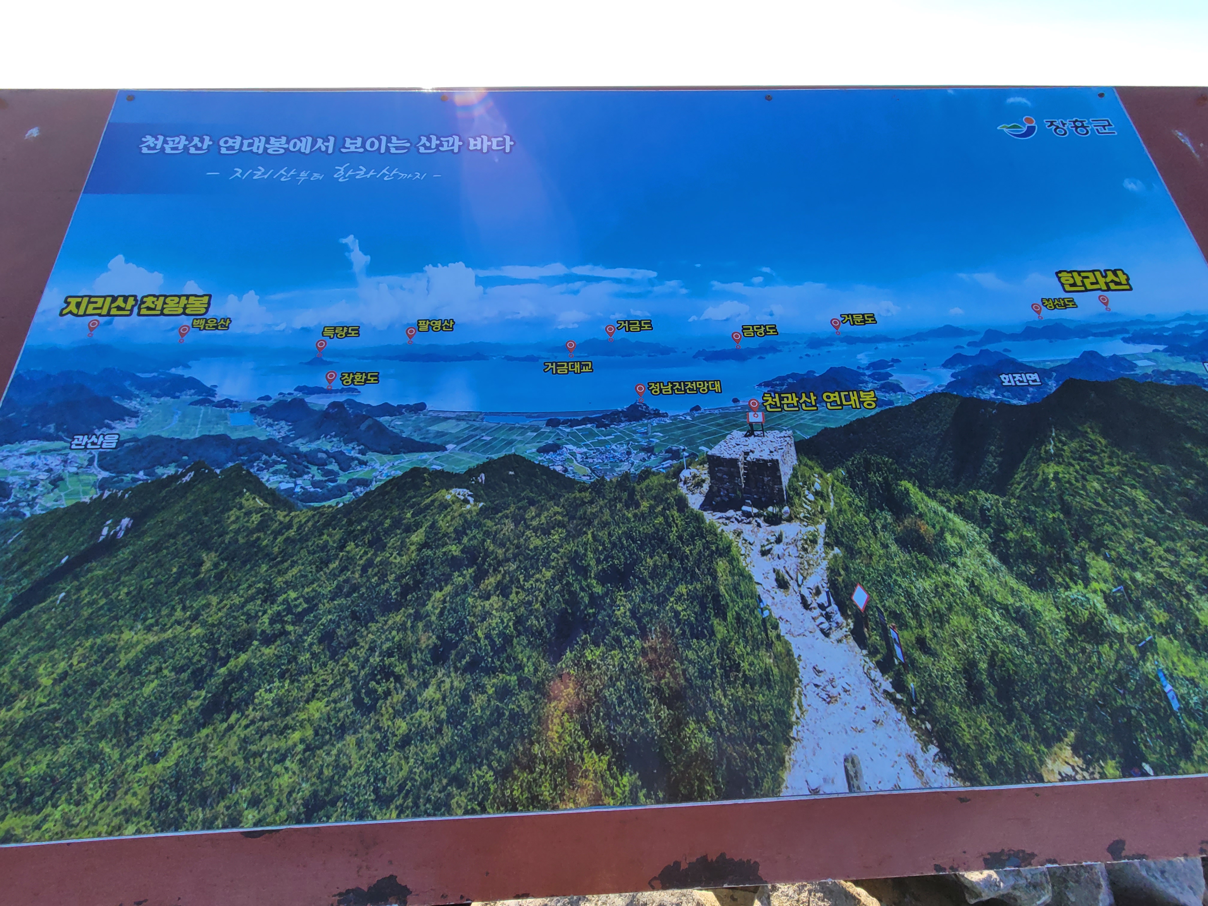 천관산 정상인 연대봉은 과거 봉수대로 쓰였는데 날씨가 맑을 때는 지리산 천왕봉, 해남 대둔산, 영암 월출산, 담양 추월산, 거금도, 금당도, 거문도, 청산도, 한라산까지 보인다.