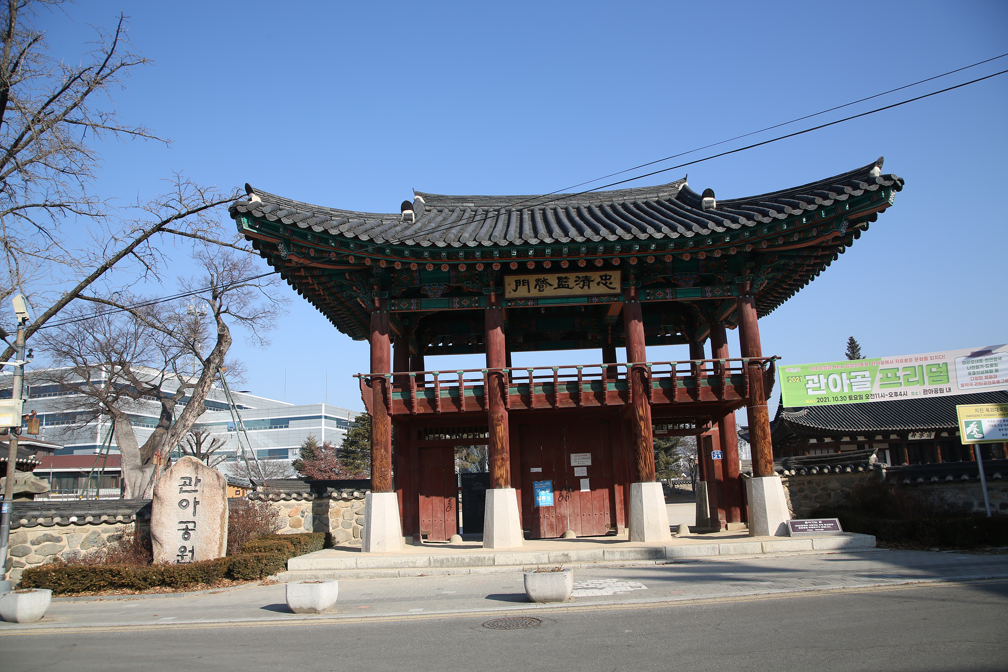 성내동 관아골목 여행은 관아공원에서부터 시작한다. 관아공원은 조선시대 충주읍성 내에 있던 충주목(忠州牧) 관아터에 조성한 공원이다. 지금은 비석만 남았지만 과거 충주읍성의 중심이었다. 지명처럼 성의 안쪽 동네(城內)로 큰 도로에서 벗어난 상가(관아골)와 나란히 있다. 공원 안에는 청녕헌, 제금당, 수청각 등 건물 세 동이 남아있다.
