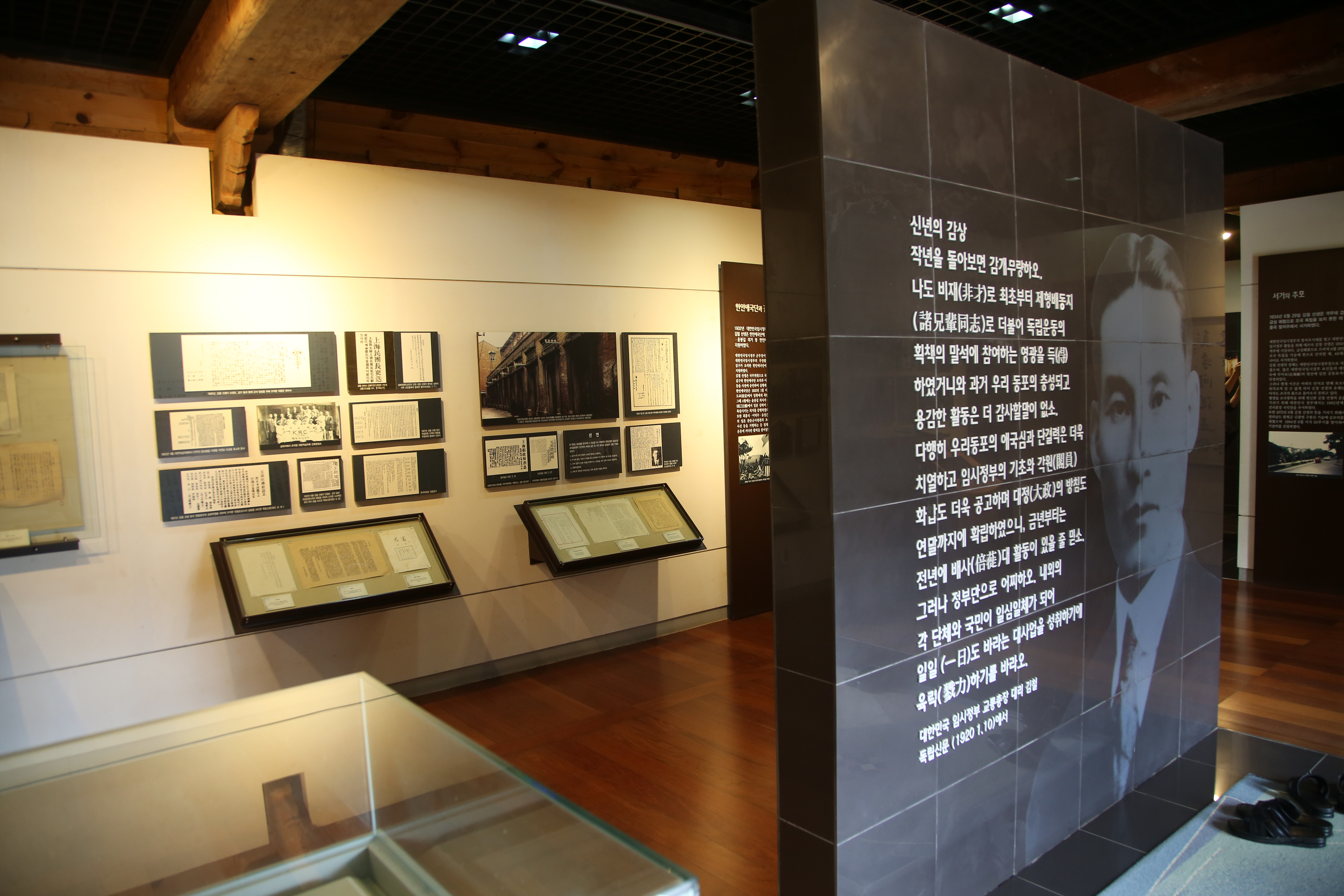 기념관 내에는 상해임시정부독립운동역사관도 있는데 상하이에 있는 임시정부청사를 왜 왜 함평에 재현했을까? 일강 김철 선생이 함평 출신으로 신광면 함정리에서 출생했기 때문이다. 선생은 중국 상해로 망명해 신한청년당을 조직하고 국내에 잠입하여 3ㆍ1독립운동의 거사를 모의하는 등 중추적인 역할을 했다.