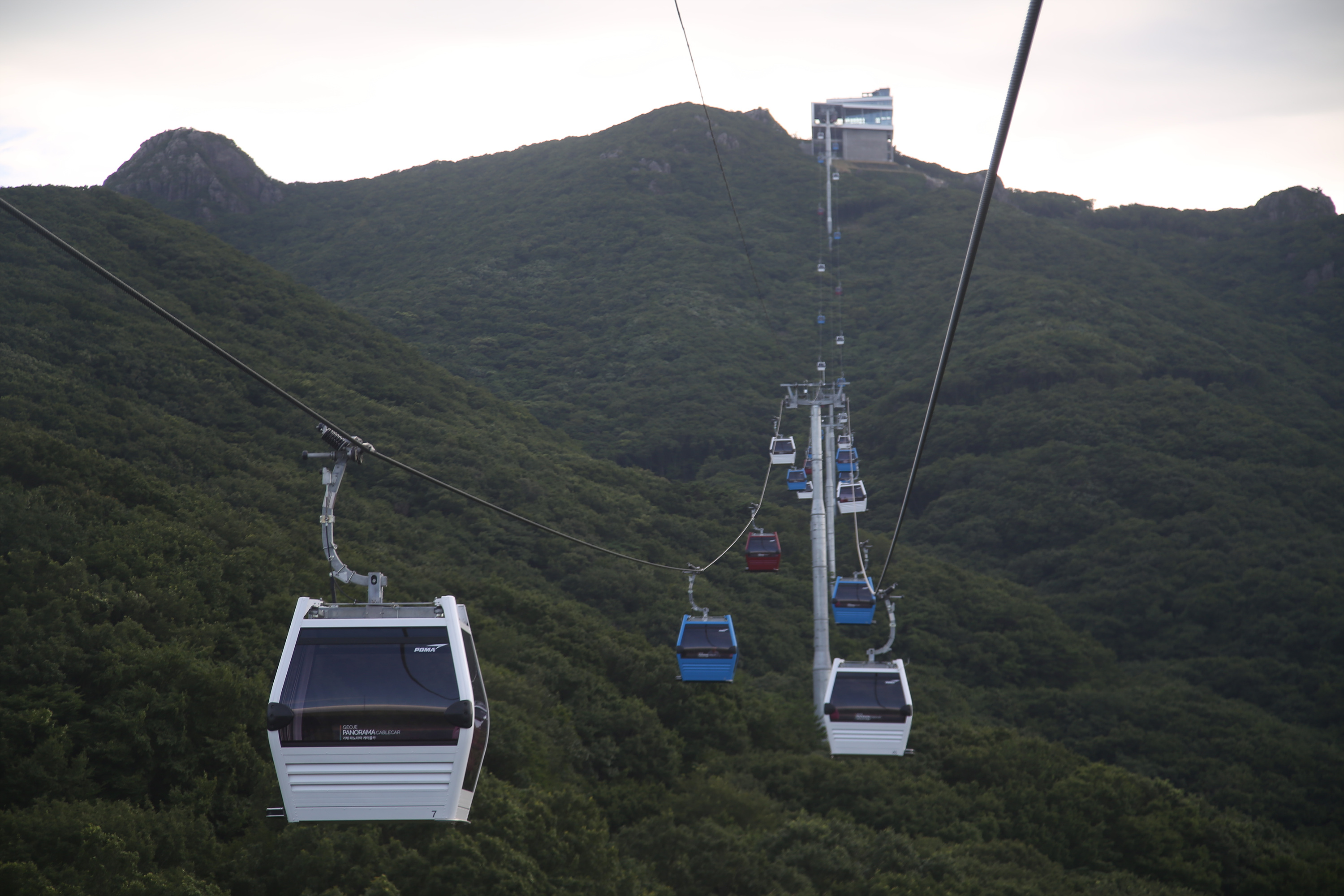 올해 3월에 개장한 거제 파노라마 케이블카는 학동고개에서 노자산 정상을 연결하는 1.56km 구간의 케이블카다. 총 45대의 캐빈 중 10대의 크리스탈 캐빈은 바닥이 유리로 되어있어 탑승하면 노자산 숲길을 걷는 듯한 느낌이다.