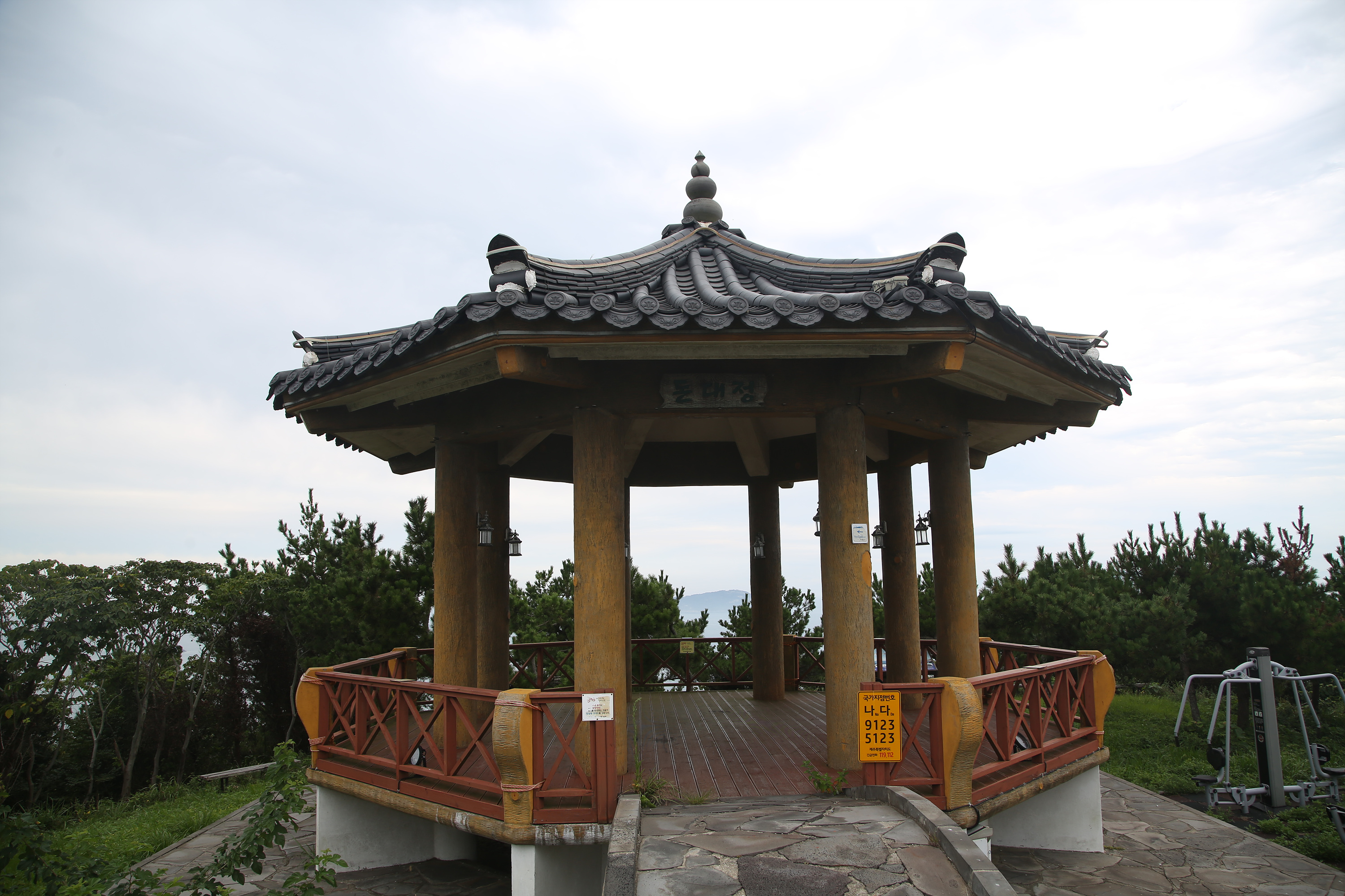 상추자도와 하추자도를 잇는 추자도 연도교를 건너니 참조기 조형물이 반긴다. 추자도는 국내 최대의 조기 산지다. 영광굴비 또한 대부분 추자도 조기를 가져가 말린다. 다시 올레 코스로 접어들었다. 추자정수장을 지나 돈대산을 오른다. 돈대산 정상에 올레 18-1 중간 스탬프가 있다. 돈대산 정상엔 멋진 팔각정이 두 채나 있어 전망을 즐기며 쉬기 좋다.
