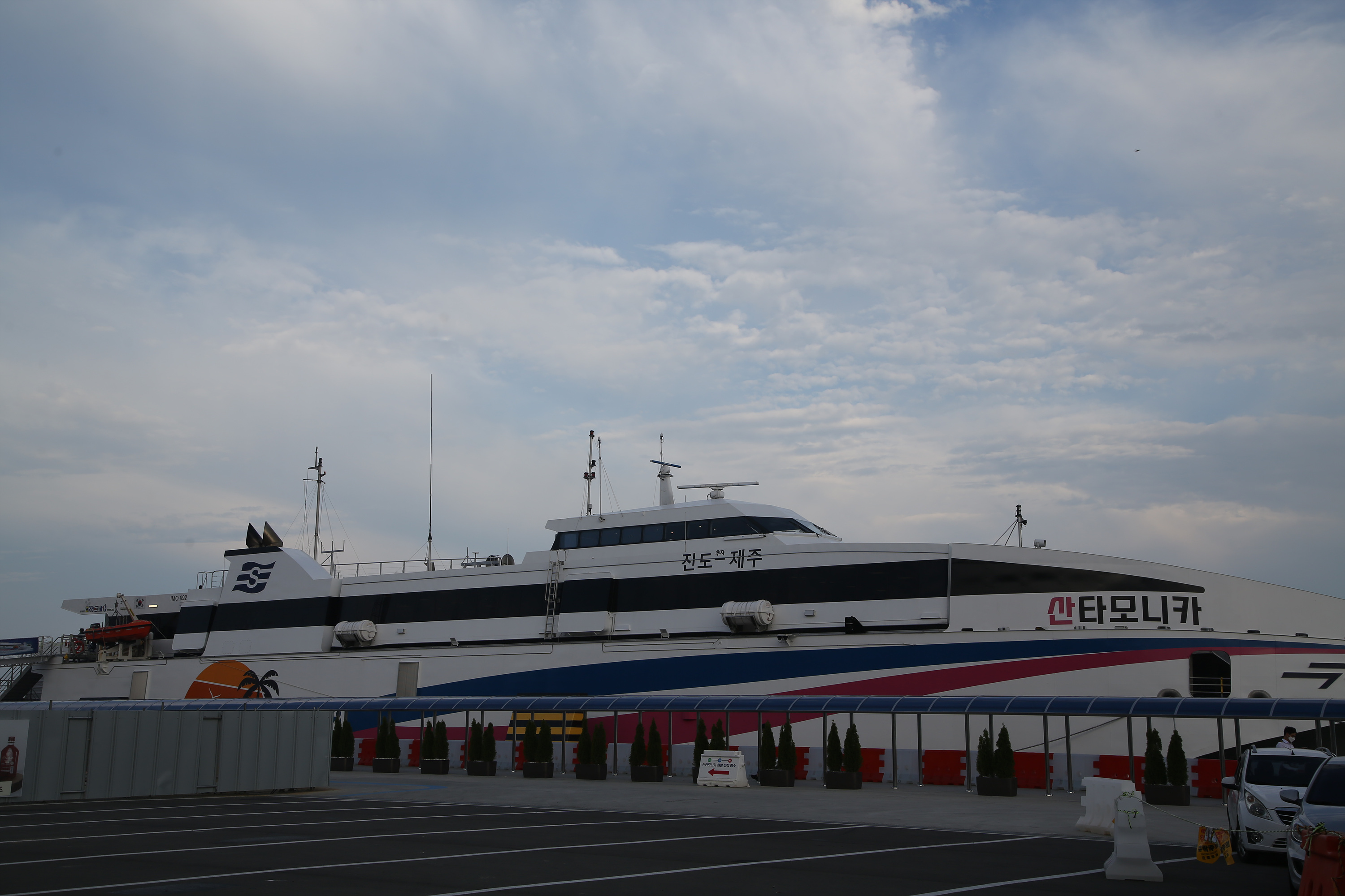 전라남도 진도항(구 팽목항)에서 출발해 제주까지 최단 시간에 연결하는 새로운 뱃길이 열렸다. 지난 5월 진도항과 제주항을 왕래하는 고속카페리 ‘산타모니카호’가 운항을 시작했기 때문이다. 호주 인캣사(INCAT)에서 건조한 산타모니카호는 길이 75.7m, 너비 20.6m, 높이 21m, 3천500톤급 규모 선박으로 최신 편의시설을 갖췄다. 여객 606명과 86대의 승용차량을 동시에 실을 수 있고, 최고 속도 42노트(78km/h)의 속도를 낼 수 있다.