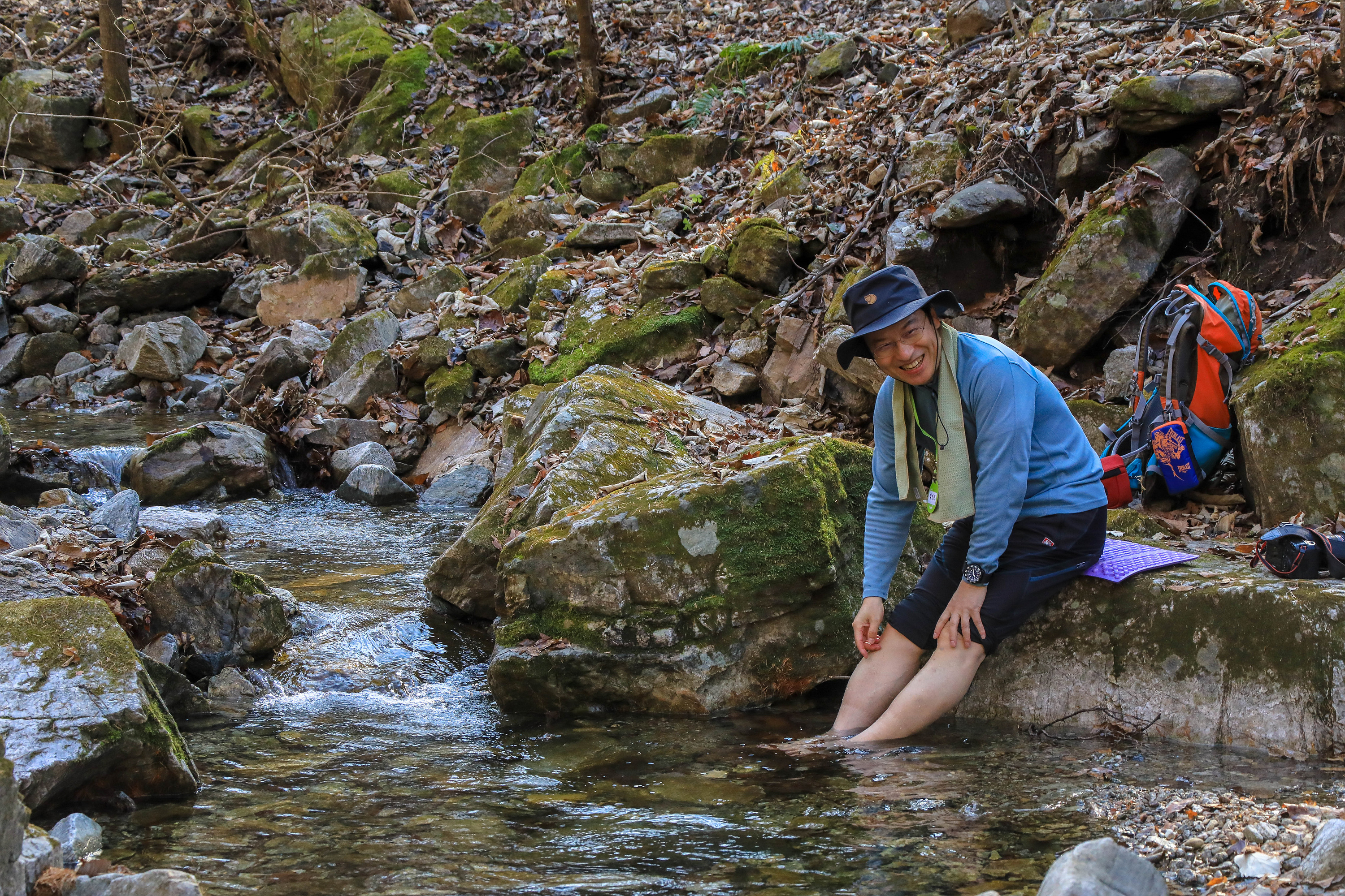 계곡물이 시원하게 흐르는 곳에선 등산화를 벗고 차가운 물에 맨발을 담근다. 혈액순환과 머리를 맑게 하는 자연요법이다. 차가운 물에 소스라치면서도 어느새 몸에 활력이 솟는 느낌이 온다.