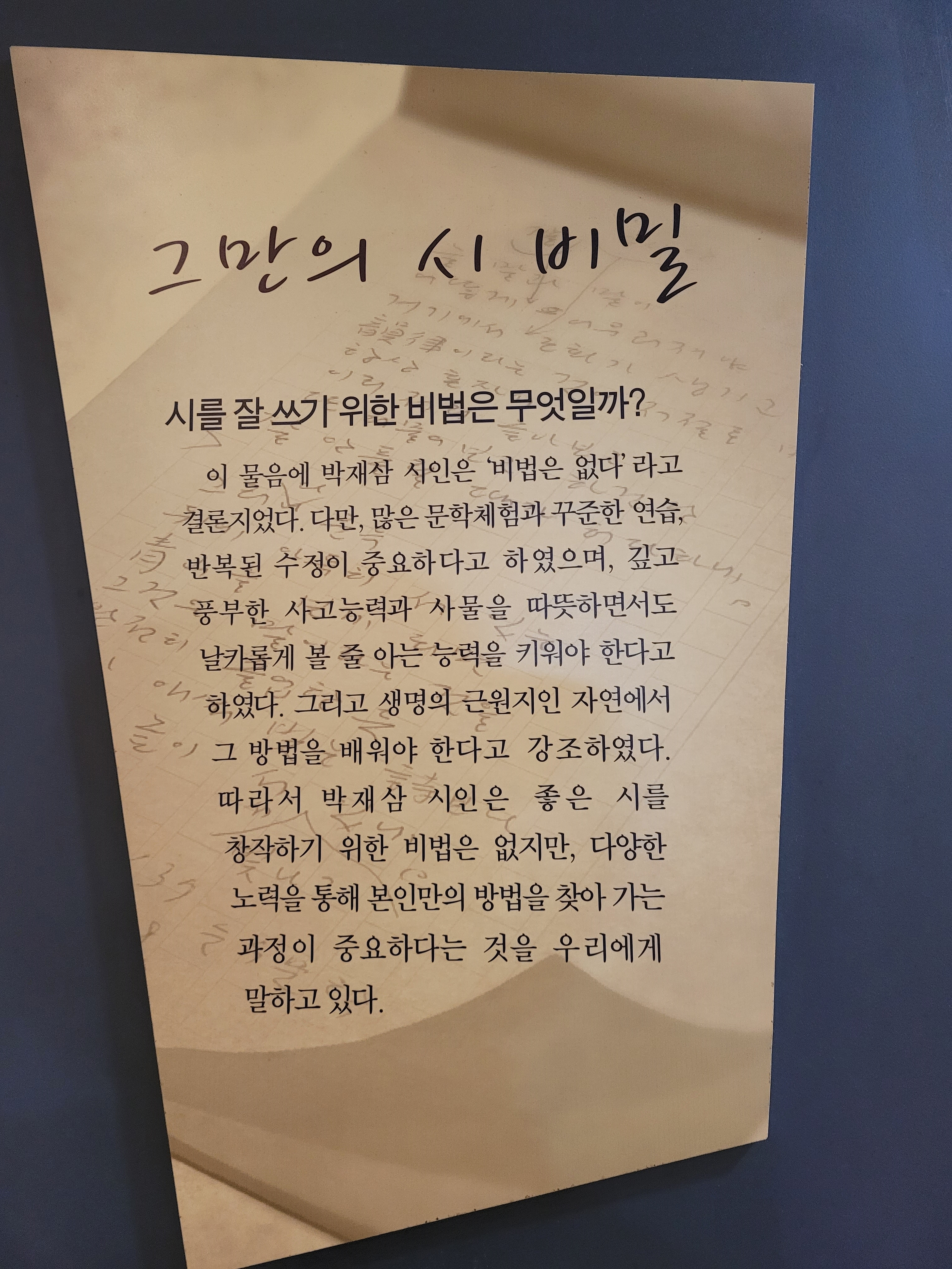 문학관을 나오니 다시 동백꽃이 반겨준다. 동백나무 아래 햇빛 비추는 벤치에 앉아 시집을 꺼냈다. 겨울바람이 차가워도 동백꽃과 박재삼의 시로 마음을 녹이니 따뜻한 차 한잔을 마신 듯 마냥 훈훈하다